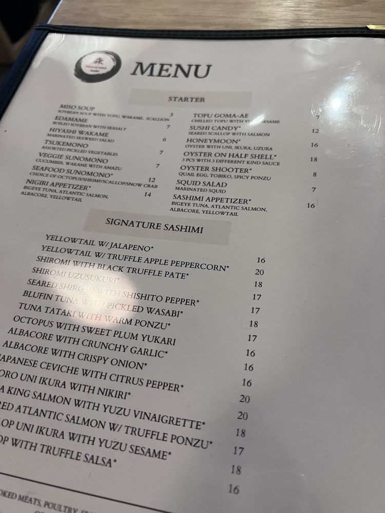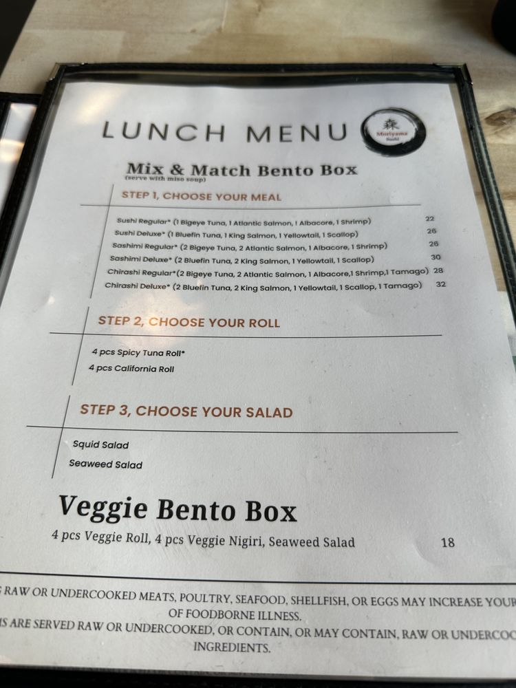 Moriyama Sushi Menu